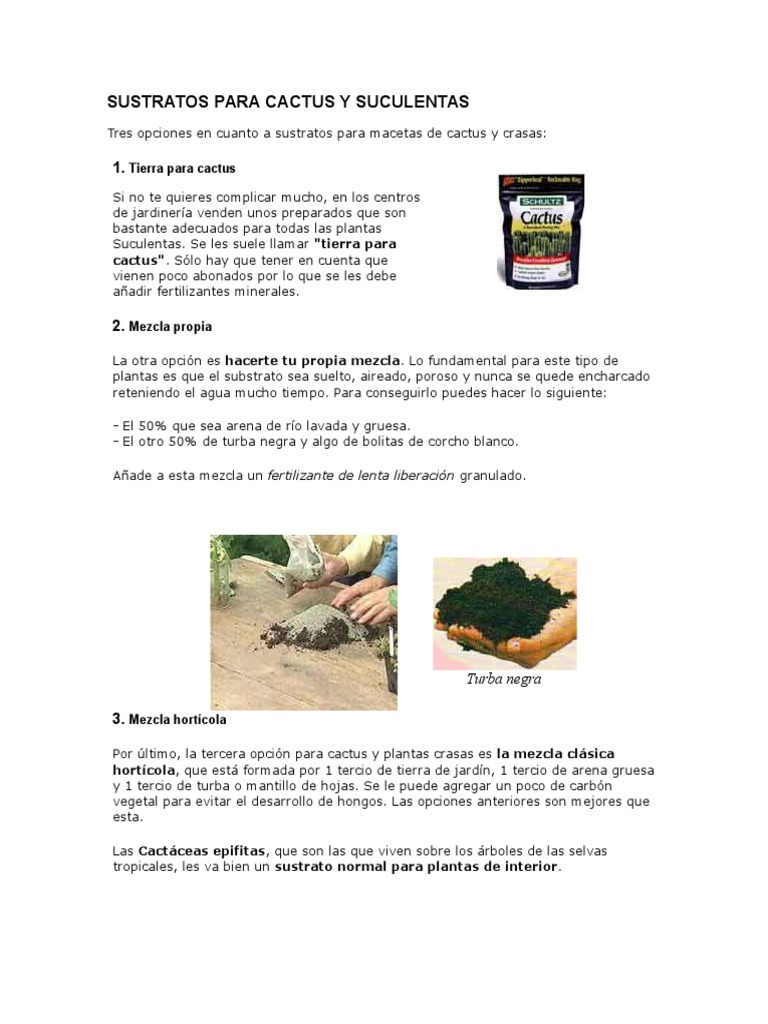 En este tutorial aprenderás cómo fabricar una buena mezcla en tu sustrato para cactus y. Tres opciones en cuanto a sustratos para macetas de cactus y crasas por último, la tercera opción para cactus y plantas crasas es la mezcla clásica hortícola, que está formada por 1 tercio de tierra de jardín, 1 tercio de arena gruesa y 1 tercio de turba o mantillo de hojas. En función de los diferentes tipos de materiales que se pueden presentar en los sustratos, estos se pueden clasificar en orgánicos e inorgánicos y de estos últimos, los de origen natural y los sintéticos. Los cactus y plantas suculentas son cada vez más populares en jardinería y decoración gracias a sus particulares y llamativas formas, que dan un toque diferente a cualquier. Las plantas suculentas son conocidas por almacenar agua en sus hojas, tallos o raíces en cantidades mucho mayores que el resto de las plantas.