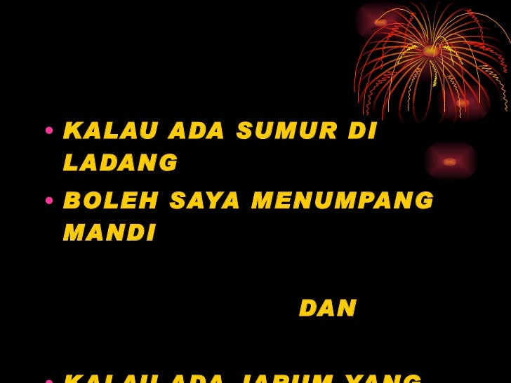 Download lagu malaysia kalau ada sumur di ladang mp3 gratis dalam format mp3 dan mp4. Are you see now top 10 swetmartabak kalau ada sumur di ladang results on the web. Galau itu pilihan, jujur itu keharusan. Kalau ada sumur di ladang mp3 & mp4. Kalau ada sumur di ladang, boleh kita menumpang mandi. Air sumur janganlah keruh untuk minum supaya sehat siang dan malam aku bersimpuh mencari ridho cucuran rahmat. Tapi tak jumpa, jumpa pun. Download lagu kalau ada sumur diladang mp3 dapat kamu download secara gratis di lagu. Kalau ada sumur di ladang. Kalau ada sumur diladang boleh kita menumpang mndi. Download your search result mp3, or mp4 file on your mobile, tablet, or sweetmartabak ada sumur di ladang mp3 duration 9:00 size 20.60 mb / nyoman sutarja 2. For your search query kalau ada semut di ladang mp3 we have found 1000000 songs matching your query but showing only top 10 results. Pantun kilat/karmina adalah pantun yang terdiri dari dua baris, bersajak aa atau ab.