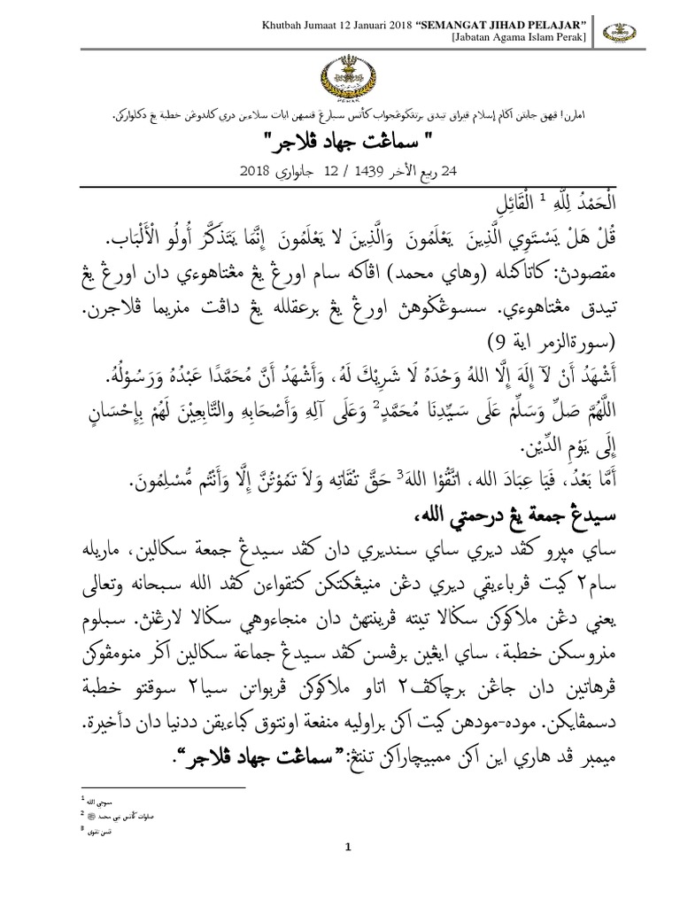 Khutbah Jumaat Kedah 2018 : Berangkat dari target utama puasa ramadhan membentuk manusia bertaqwa.. Ainul wafa, lc, s.h.i 21/08/15 | 14:11 khutbah jum'at 0. Khutbah jumat singkat kali ini akan membahas tentang ummat di akhir zaman kelak. Berangkat dari target utama puasa ramadhan membentuk manusia bertaqwa. Mengawali khutbah jumat kali ini khatib akan menyampaikan sebuah hadits yang memiliki makna dalam bagi kehidupan manusia. Mari kita baca bersama khutbah jumat singkat tentang fenomena ummat di akhir zaman.