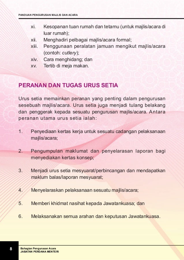 Pengurusan majlis dan protokol from reader020.dokumen.tips Sam paya jaras official 2 days ago. Atau dalam pelbagai istiadat atau majlis. etiket juga sering disebut tata krama, yakni kebiasaan sopan santun yang disepakati dalam lingkungan pergaulan antar manusia setempat. Protokol memegang peran yang cukup vital dalam perpindahan data di internet. Untuk jemputan ceramah atau pengacaraan majlis, sila. Teknik berkomunikasi dan berinteraksi yang efektif (aziz salleh) vi. Mengenali peralatan majlis jamuan ringan jamuan secara. Penyediaan teks pengacara majlis 6.