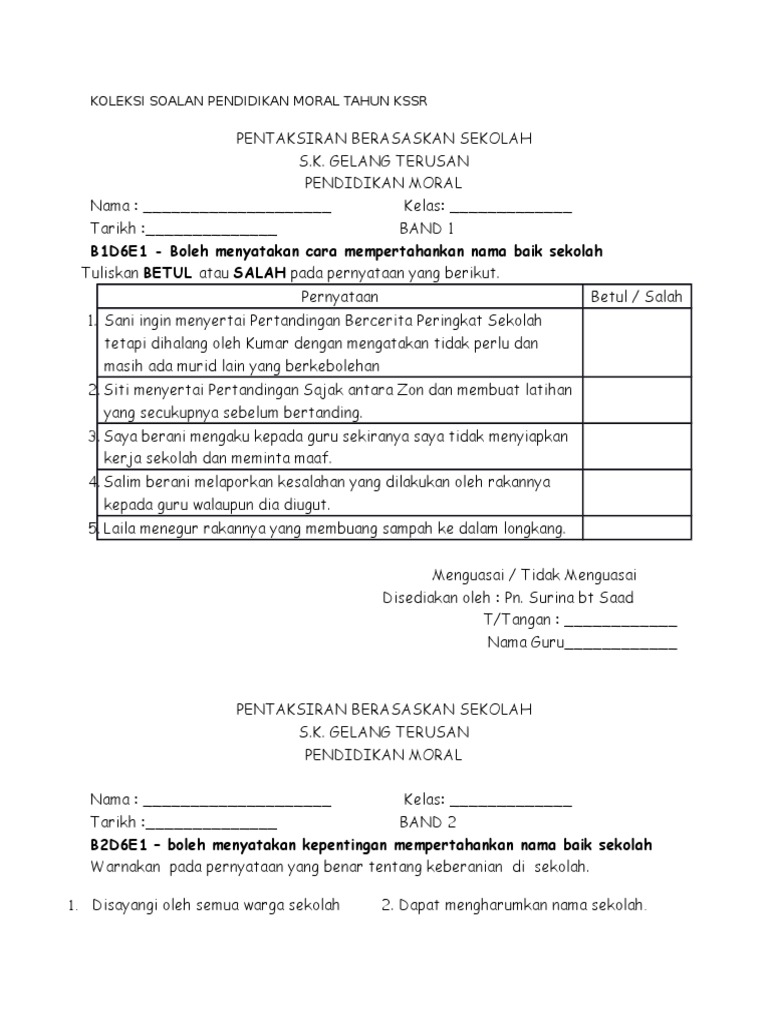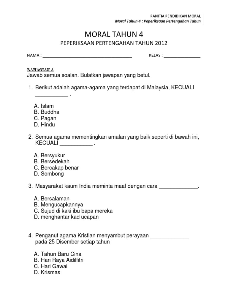 Contoh soalan pendidikan moral tahun 5. Berikut adalah kertas soalan terkini peperiksaan akhir tahun pendidikan moral tahun 5. Lim chap sam, fatimah salleh & munirah ghazali. Pelajar dan guru dapat memanfaatkan penggunaan ict bagi memberikan impak kualiti yang baik dalam pembelajaran pada masa kini. Subjek pendidikan moral tahun 5; Himpunan soalan ujian bulan mac tahun 5 2020 mengandungi keseluruhan ujian bulan mac untuk semua subjek untuk tahun 5. Ia adalah mekanisme dalam mencapai sesuatu objektif pembelajaran yang kompetatif. Lam sook heng, hasnita hassan basari & sangeetajit kaur. Download surah al baqarah domestic violence cases in malaysia downloadable job application form malaysia download film sebelum iblis menjemput ayat 2 terbit21 download film sebelum iblis menjemput ayat 2 1080p download ayat suci al quran mp3 dr burhanuddin al helmy doctrine of ultra vires meaning in. Sk yaacob latif 1 jalan peel, 55100 kuala lumpur. Klik link ini untuk download —>> bank soalan 1 (versi pdf) klik link ini untuk download —>> bank soalan 2 (versi word) Koleksi soalan ujian mac tahun 5 k. Jutaan terima kasih kepada pihak yang sanggup berkongsi.